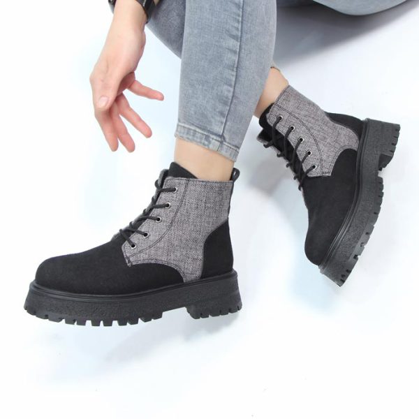 بوت و نیم بوت زنانه و دخترانه مدل بندی رنگ مشکی طوسی