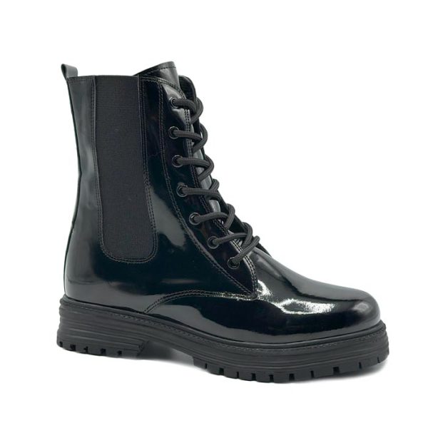 بوت و نیم بوت زنانه و دخترانه مدل دو بر کش ورنی رنگ مشکی کد A222