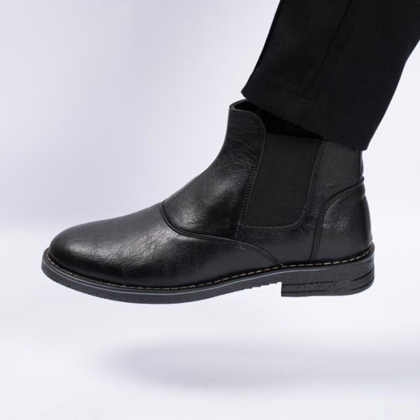 نیم بوت چرم مردانه رنگ مشکی مدل چروک چلسی کشی کد 218