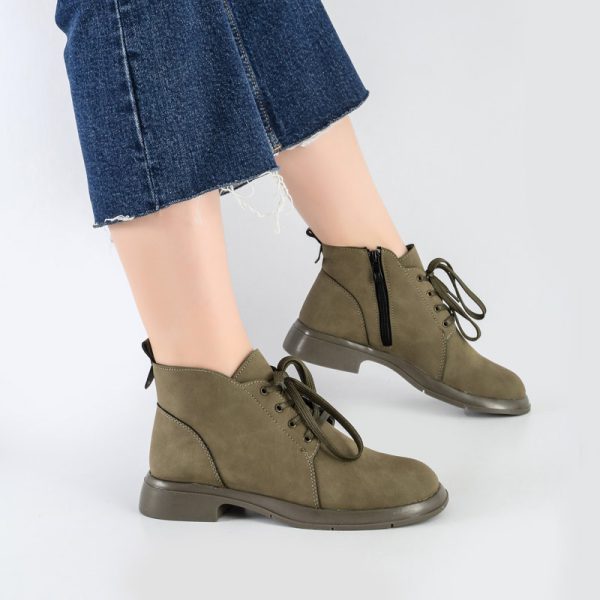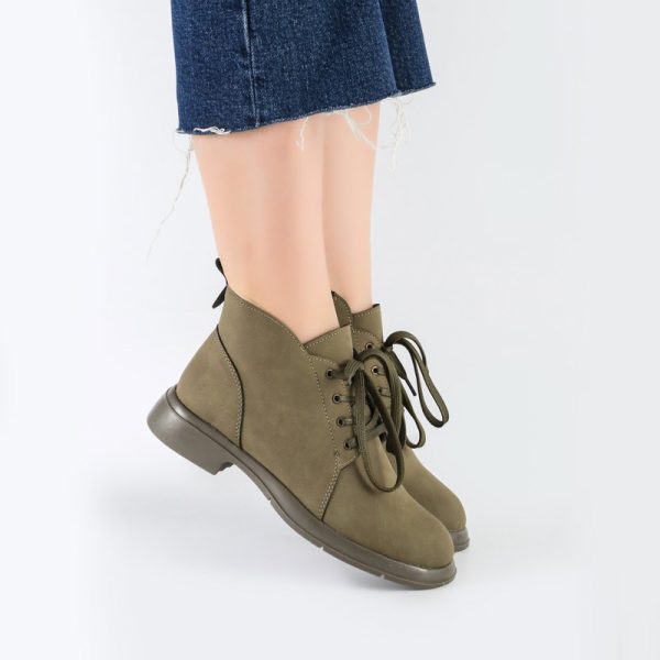 بوت و نیم بوت زنانه و دخترانه مدل بندی بغل زیپ نیم ساق رنگ یشمی