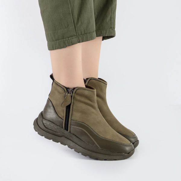 بوت و نیم بوت زنانه و دخترانه مدل دو بر زیپ رنگ یشمی