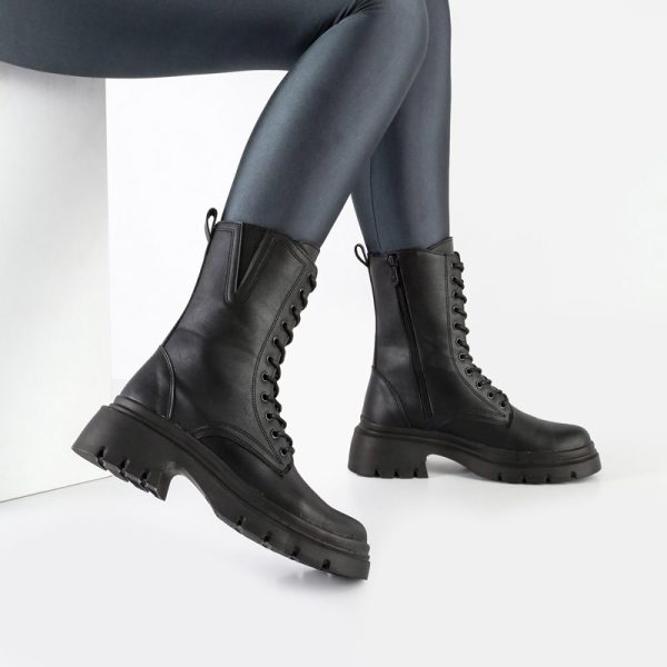 بوت و نیم بوت زنانه و دخترانه مدل بندی بغل زیپ برشکا BERESHKA رنگ مشکی کد A509