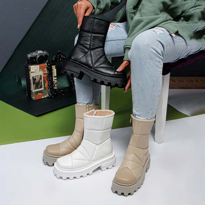 بوت و نیم بوت زنانه ساق بلند رنگ کرم مدل کاپشنی زیپدار