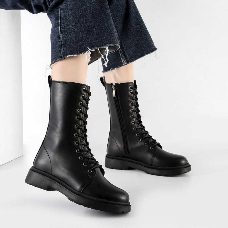 بوت و نیم بوت زنانه و دخترانه مدل بندی بغل زیپ رنگ مشکی کد A593