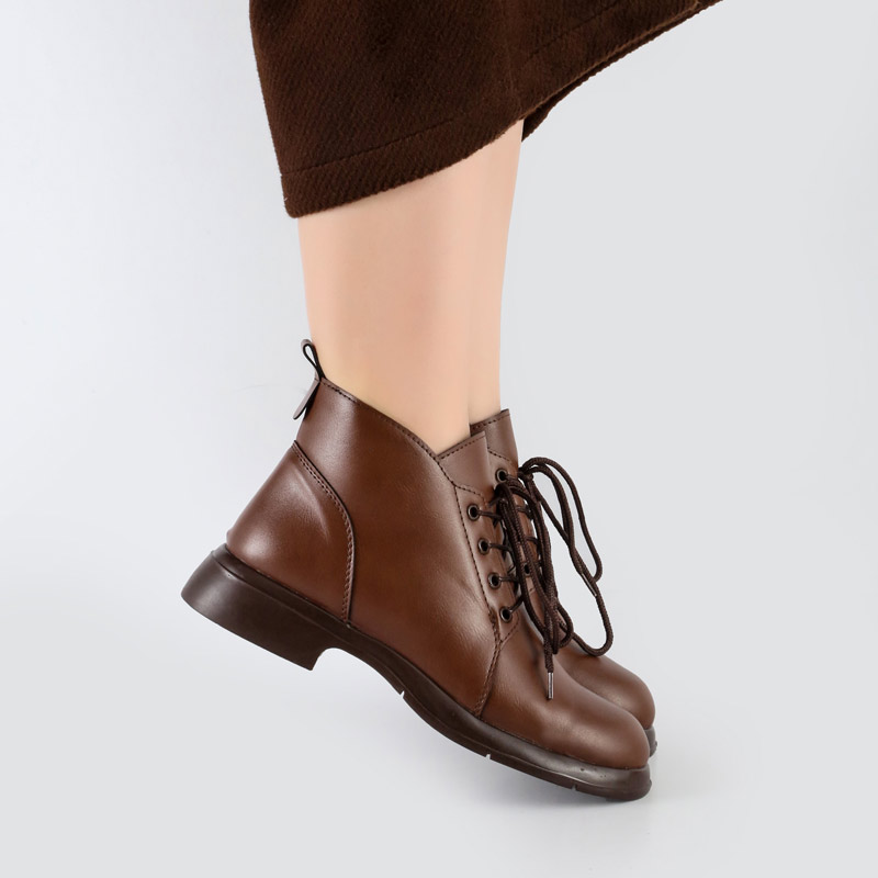 بوت و نیم بوت زنانه و دخترانه مدل بندی بغل زیپ نیم ساق رنگ قهوه ای