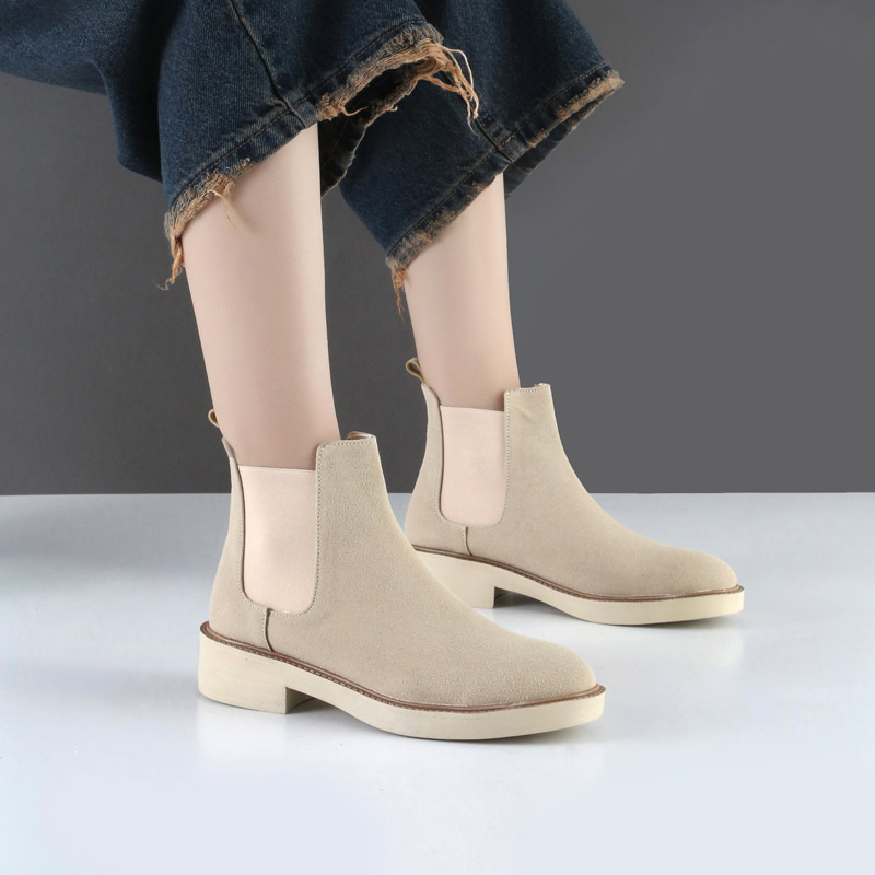 بوت و نیم بوت زنانه و دخترانه مدل چلسی دو بر کش رنگ خاکی
