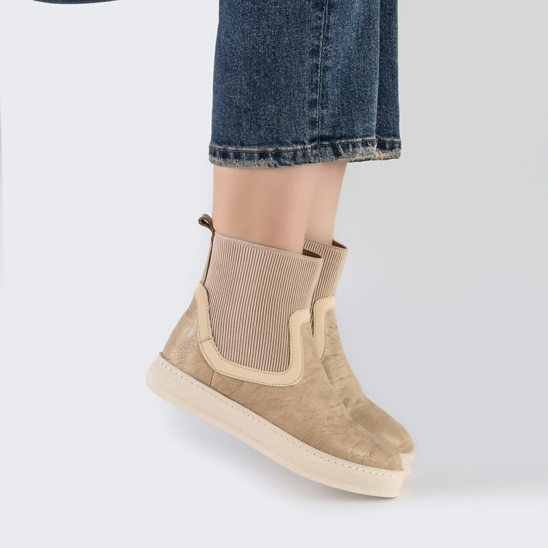 بوت و نیم بوت زنانه و دخترانه مدل کشی رنگ کرم