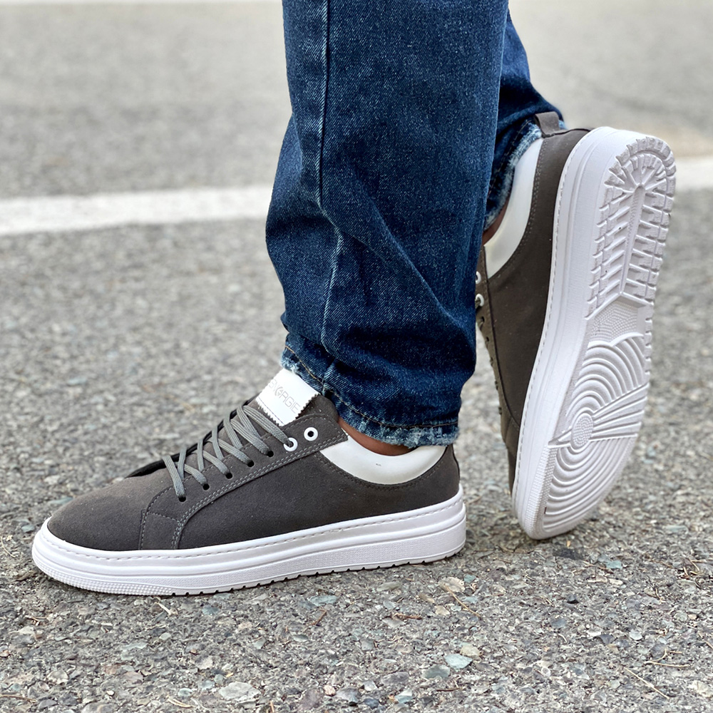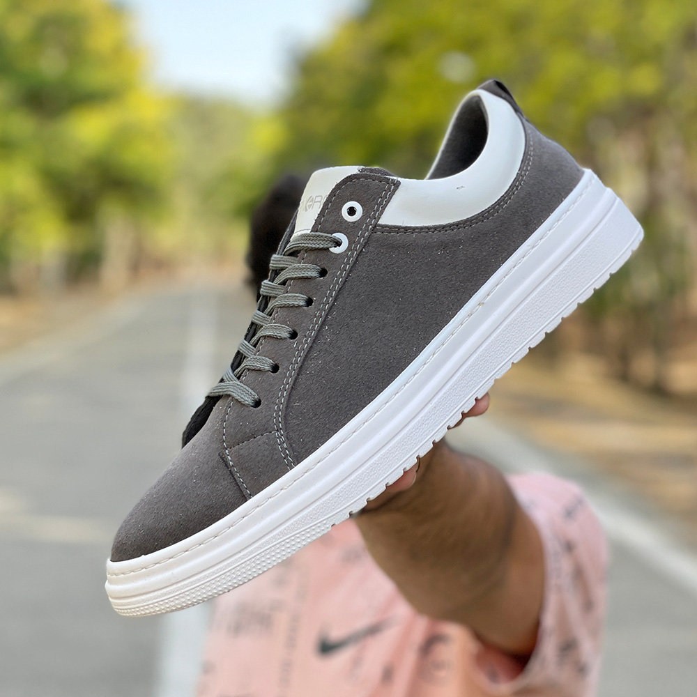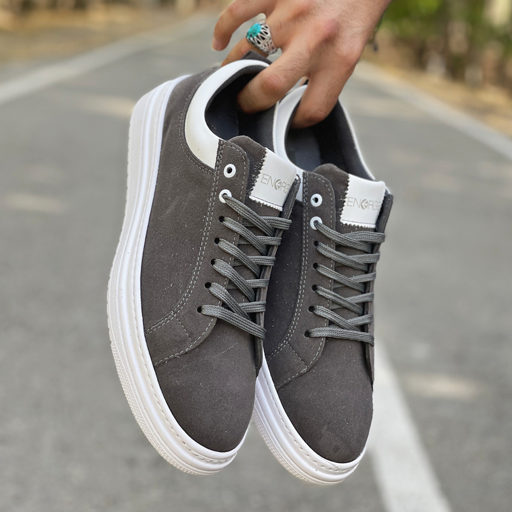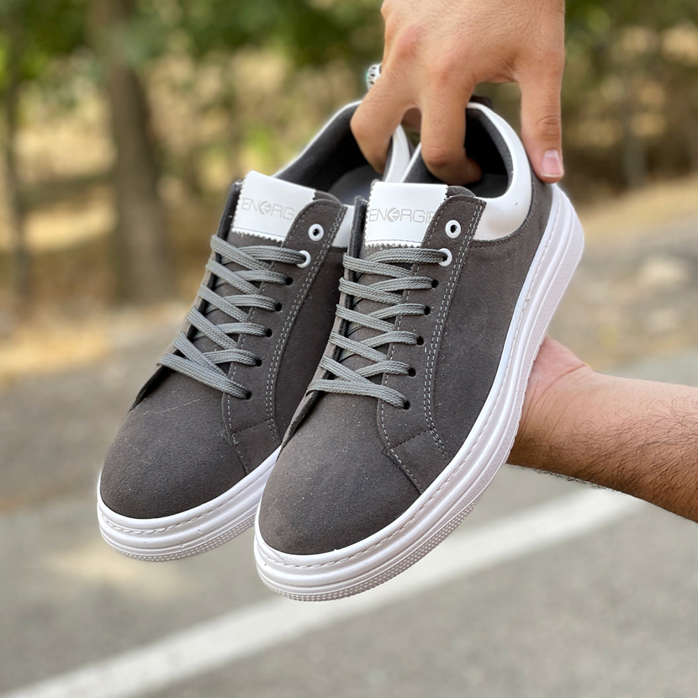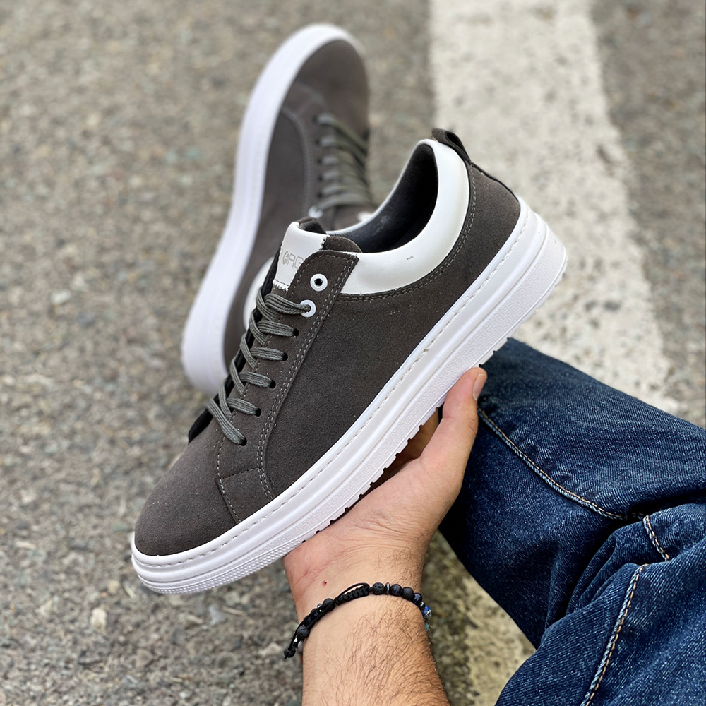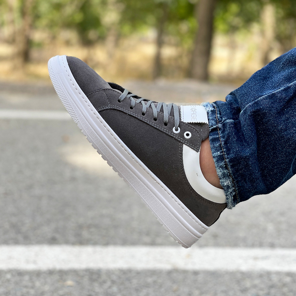 کفش ونس مردانه ساده رنگ طوسی دور دوخت و رویه جیر کد 4294