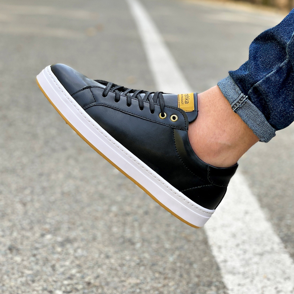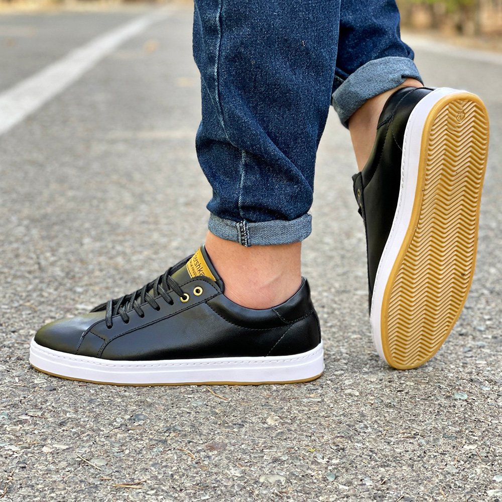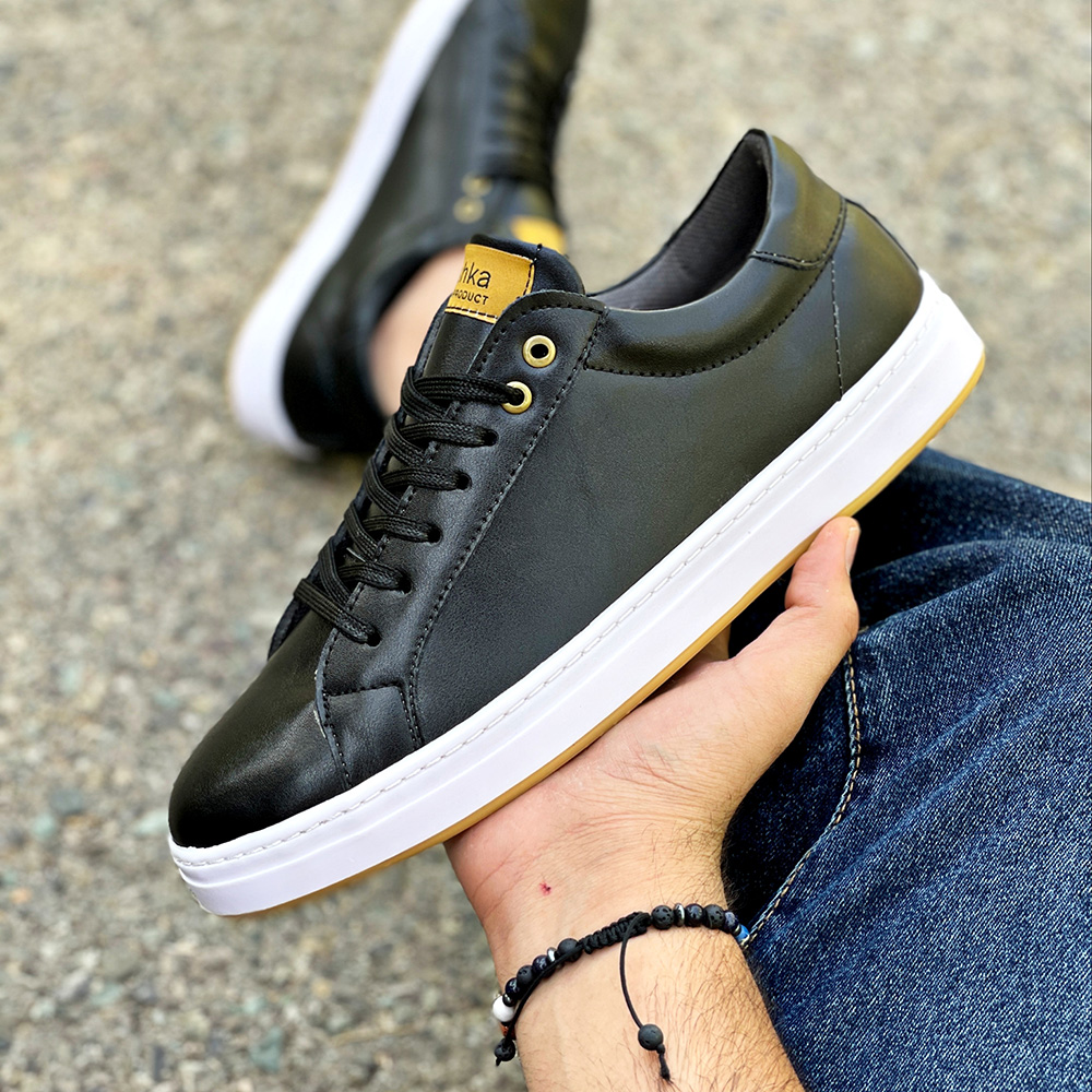 کفش ونس مردانه مدل ساده رنگ مشکی دور دوخت و رویه چرم کد 4232