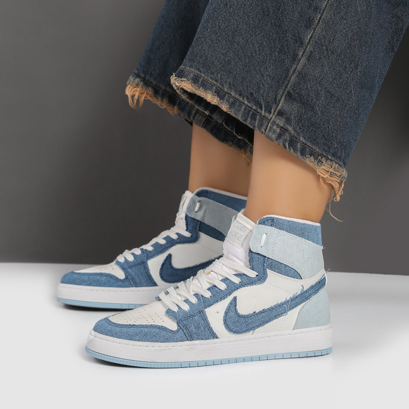 کفش و کتانی زنانه و دخترانه رنگ سفید آبی مدل نایک NIKE Jordan 1 ساقدار