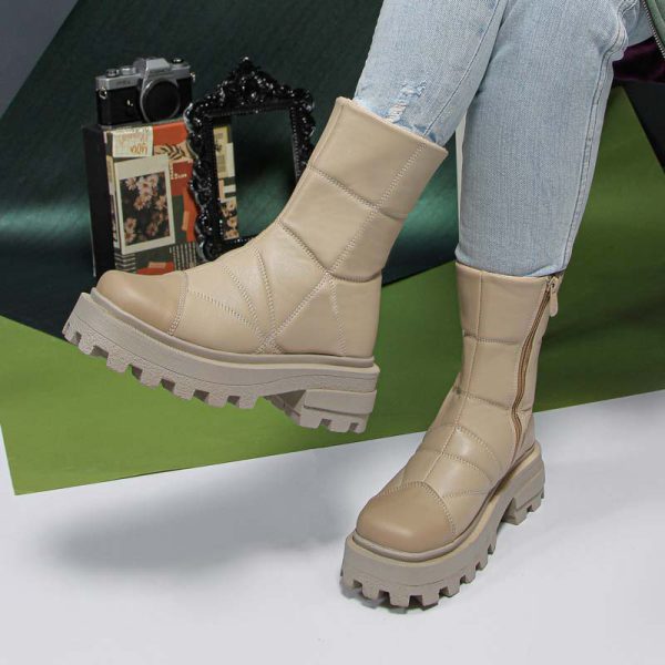بوت و نیم بوت زنانه ساق بلند رنگ کرم مدل کاپشنی زیپدار کد 61486