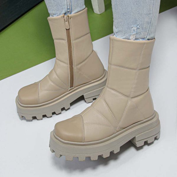 بوت و نیم بوت زنانه ساق بلند رنگ کرم مدل کاپشنی زیپدار کد 61486